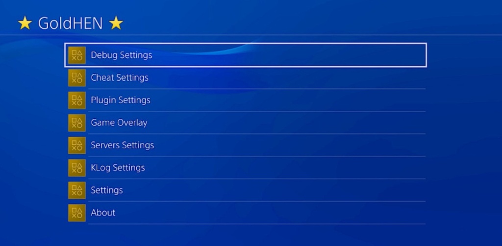 ETAhenveyaGoldHENüzerinden “Debug Settings” aktif edilir. -